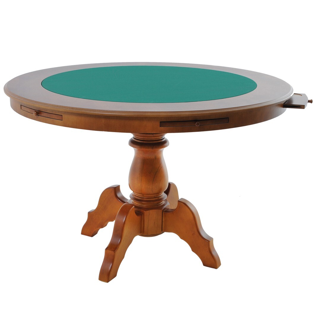 Mesa de Jogos Carteado Redonda Montreal 6 Lugares Tampo Reversível com bandejas, Eu Nobre confeccionada em madeira maciça de jequitibá de forma artesanal, com compensado e MDF laminado. Possui pintura exclusiva com fundo e verniz, além de detalhes da própria madeira que proporcionam ao produto uma beleza única. Contém 6 bandejas com guias para copo em madeira e tampo reversível, possibilitando seu uso tanto para jogar cartas de baralho como para mesa de jantar, conseguindo agregar elegância e praticidade ao ambiente.
