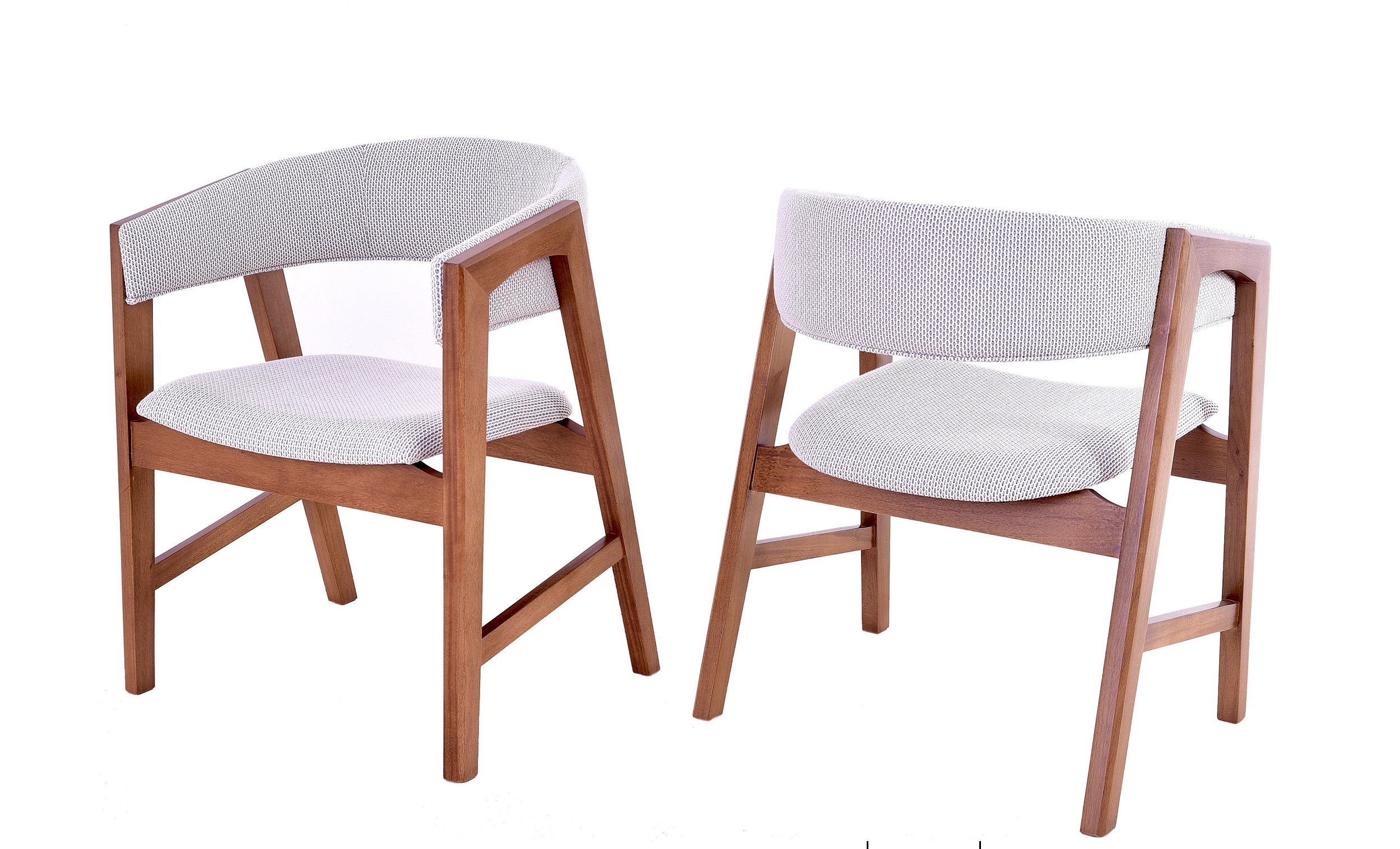 Poltrona com encosto estofado, confeccionada em madeira maciça de jequitibá, proporcionando durabilidade e sofisticação ao ambiente. Personalize sua poltrona após a compra, escolhendo entre diversas opções de cores de pintura e tipos de tecido para o assento.