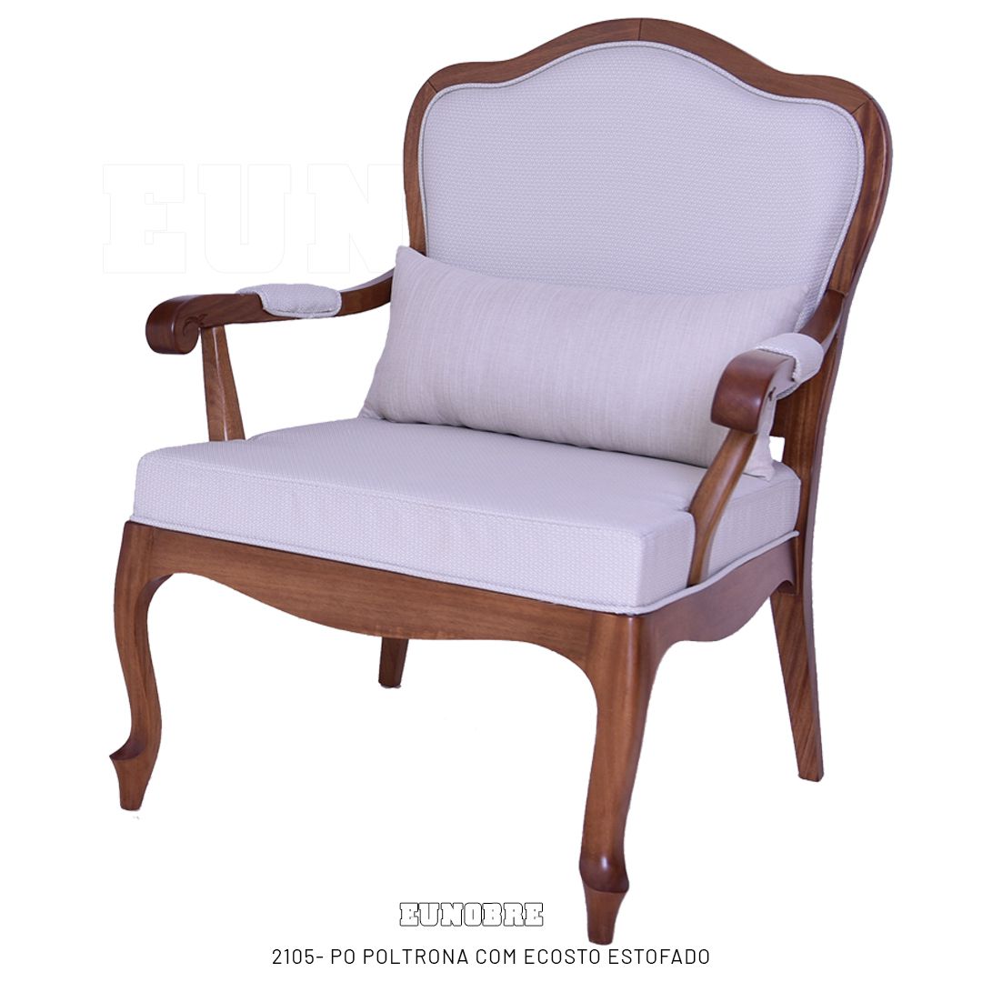 Poltrona clássica com encosto estofado- EU NOBRE confeccionada em madeira maciça de jequitibá. Possui pintura exclusiva com fundo e verniz, que proporcionam ao produto uma beleza única. Conseguindo agregar elegância e praticidade ao ambiente.